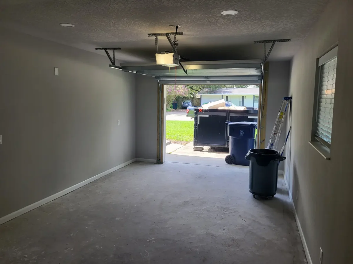 In addition to the interior improvements, the garage was fully restored and reintroduced as a usable feature of the home. This phase included reframing the garage opening and installing a new garage door that complemented the home’s exterior. The restored garage added both storage capacity and practical value, aligning with the homeowner’s needs while improving the overall functionality of the property.