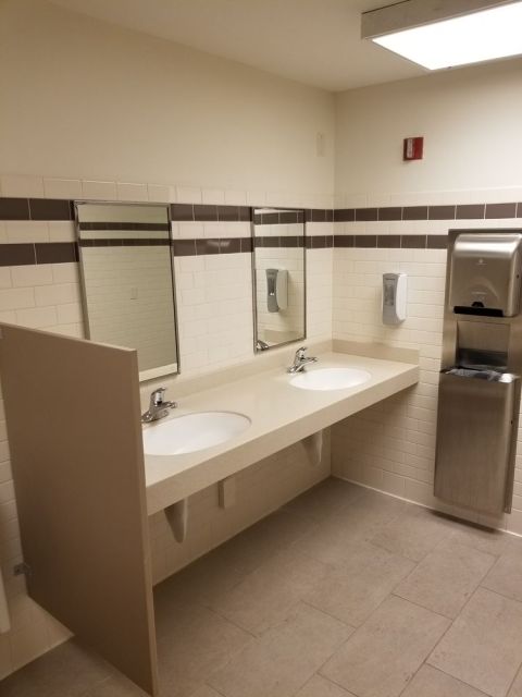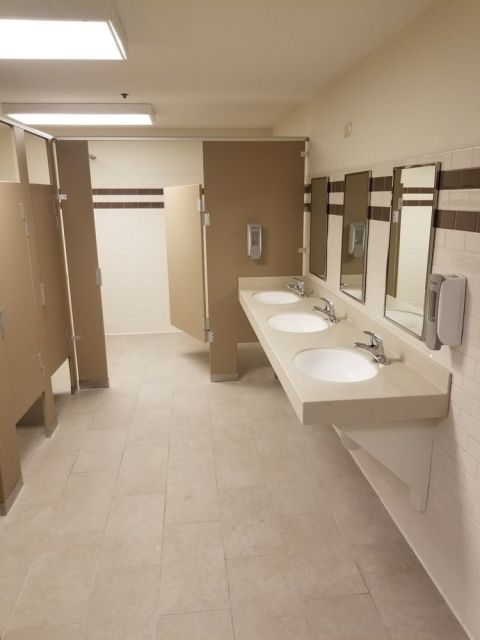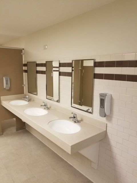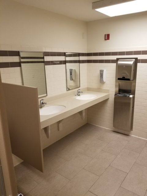Hybrid Construction was contracted to remodel both bathrooms at a Barnes and Noble bookstore in Brandon, FL. The store remained open during the course of the project so coordination with bath access was very important. The existing baths did not have proper ADA clearances at the entry door, so layout changes were necessary. Other Scope of work for the project included demolition, framing, drywall, paint, wall tile, floor tile, solid surface countertops, sinks, faucet, toilets, bath accessories, and new bathroom partitions. Close coordination between the service company and store manager was necessary to properly execute the work. The duration of this project was 4 weeks. (2 weeks per bath).